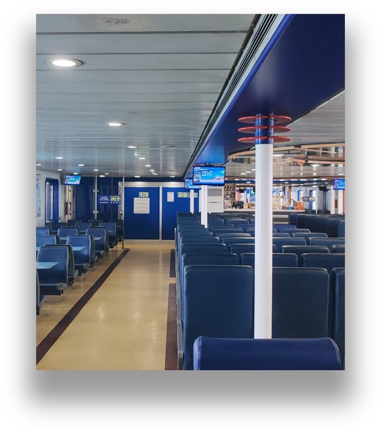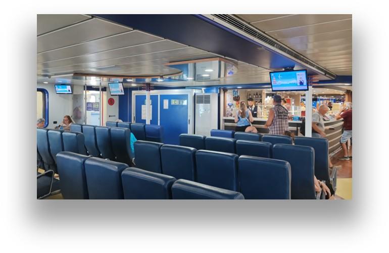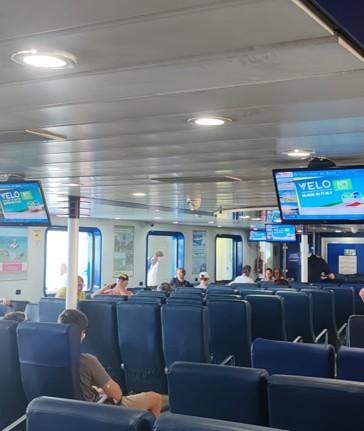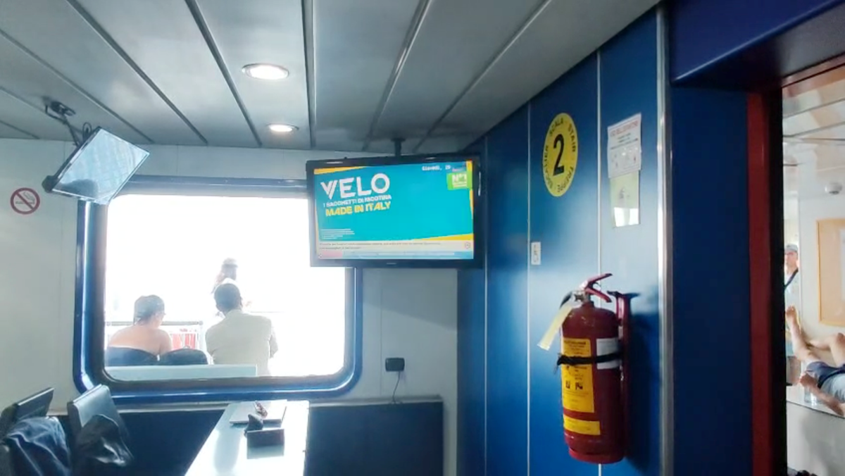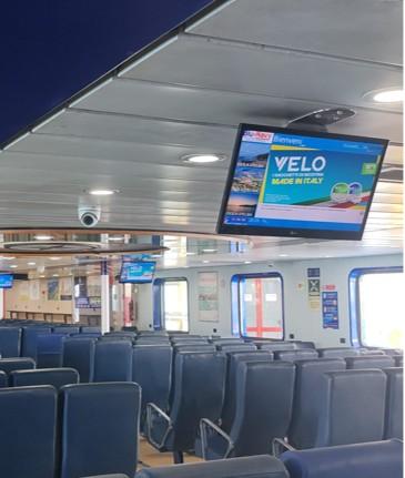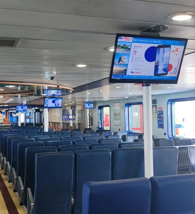 54 schermi digitali multiformato installati su 3 unità di flotta operative, 1,3 milioni di passeggeri annui.